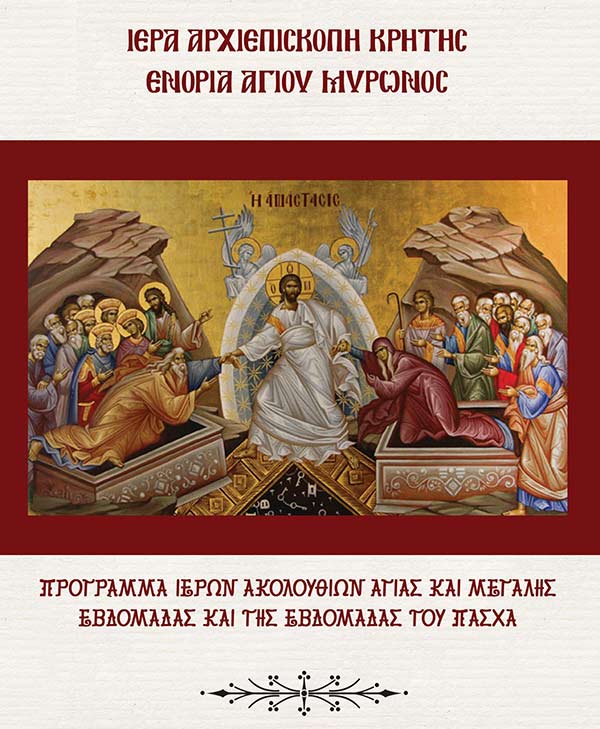 ΠΡΟΓΡΑΜΜΑ ΑΚΟΛΟΥΘΙΩΝ ΜΕΓΑΛΗΣ ΕΒΔΟΜΑΔΑΣ ΚΑΙ ΠΑΣΧΑ